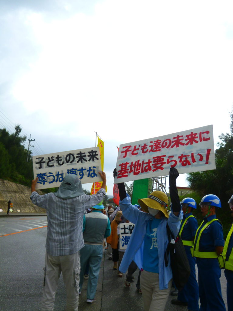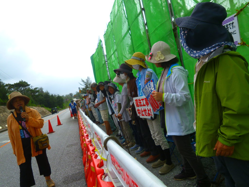 今日も辺野古ゲート前、安和の琉球セメント桟橋前、本部塩川港と、3つの拠点で県民の必死の抵抗が繰り広げられる。(高江の森でも7月1日から工事が再開された)。
