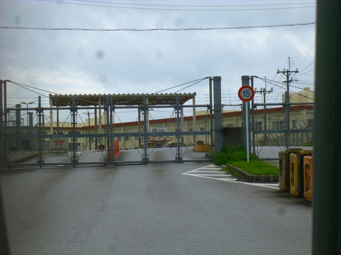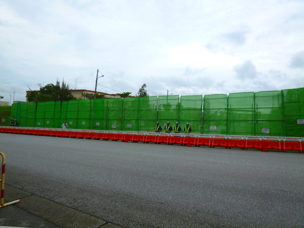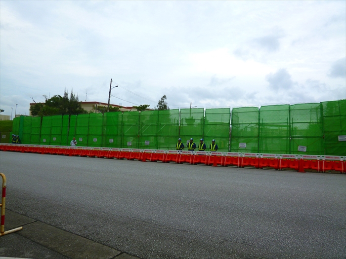 いつもは、20~30人の民間警備員がずらっと並んでいる工事用ゲートも、ご覧の通り閑散。その中の基地のゲートもしっかりと門扉を閉じている。