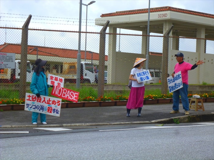 8:20辺野古着。メインゲート前では、すでに毎朝早朝行動をしている人たちが、今日もアピール行動を開始していた。