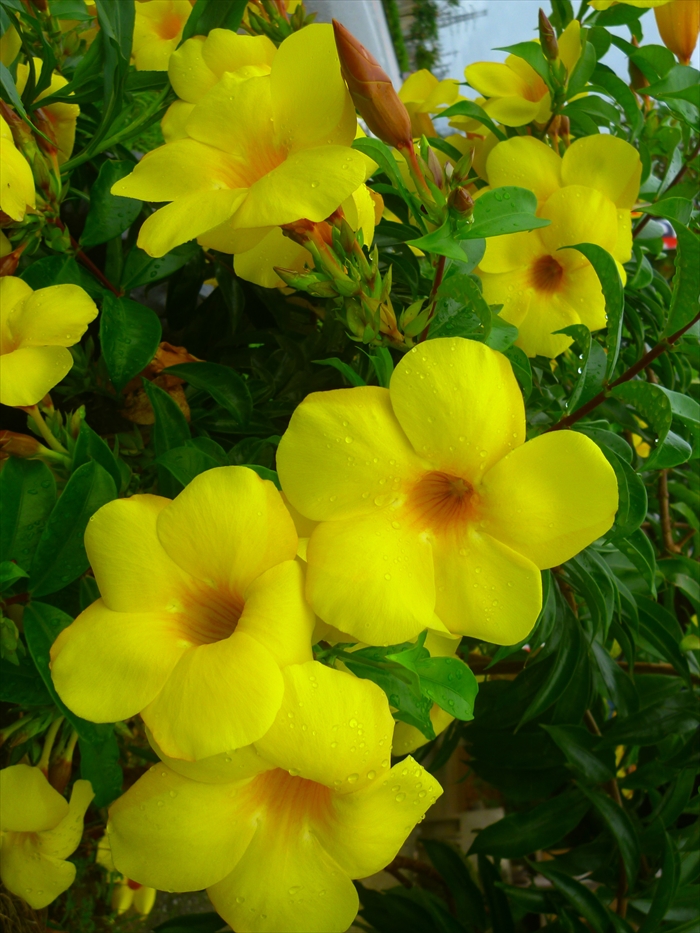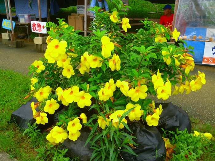 テント前に咲き誇るゴールデンカップ(アリアケカズラ)の黄色がまぶしい。生命の力強さを感じる。