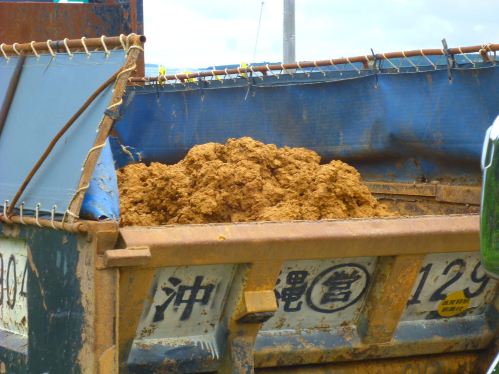列をなすダンプ、それらが積んでいるのはどこからどう見ても赤土以外の何物でもない。それを岩ズリとしらばっくれる沖縄防衛局は、この国の政治(安倍政権)の象徴的な姿そのものだ。