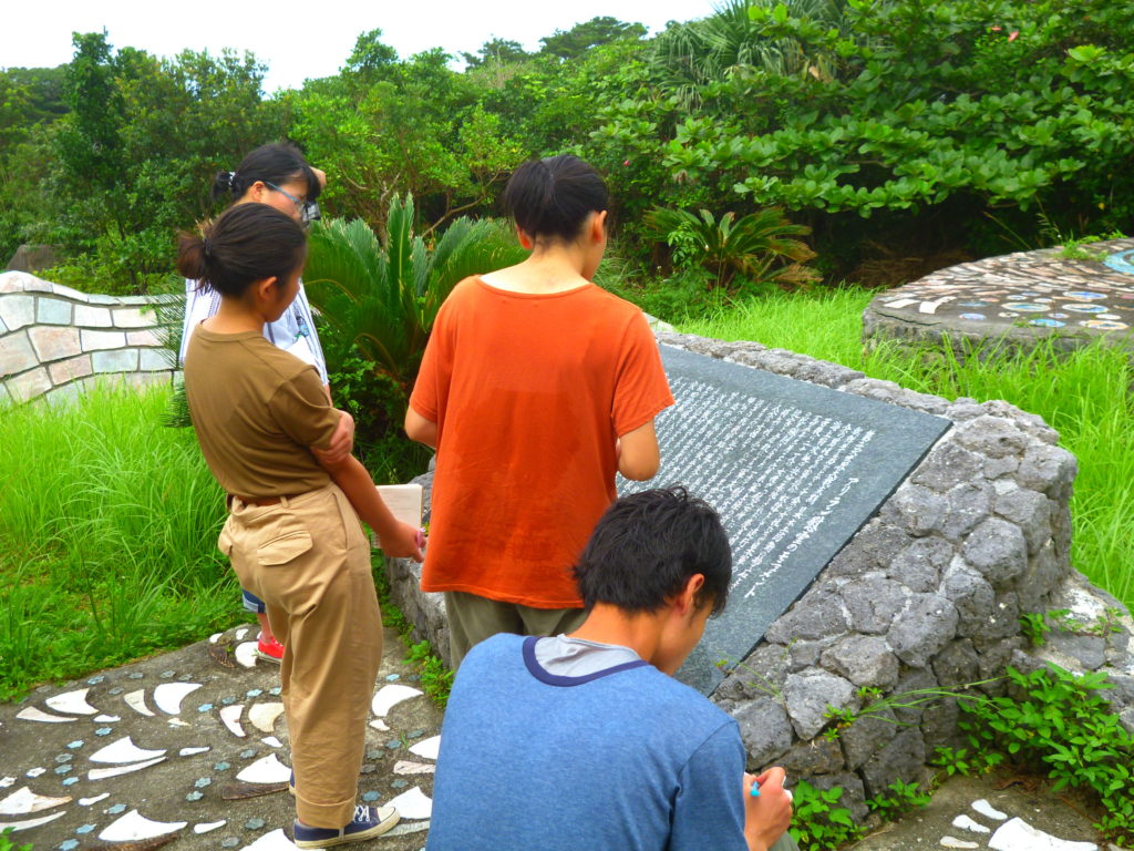 この日案内した島根県の高校は、毎年修学旅行で沖縄にやってくる。沖縄に来る前に、沖縄の歴史、文化、自然、沖縄戦など生徒たちが自ら調べ、しっかり事前学習をしてくる。ときには私が知らない沖縄を知っており、私の方が教えてもらうこともあるくらいだ。こちらも生半可な知識では案内ができない。
