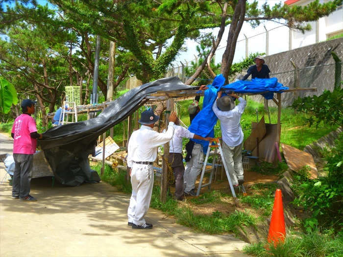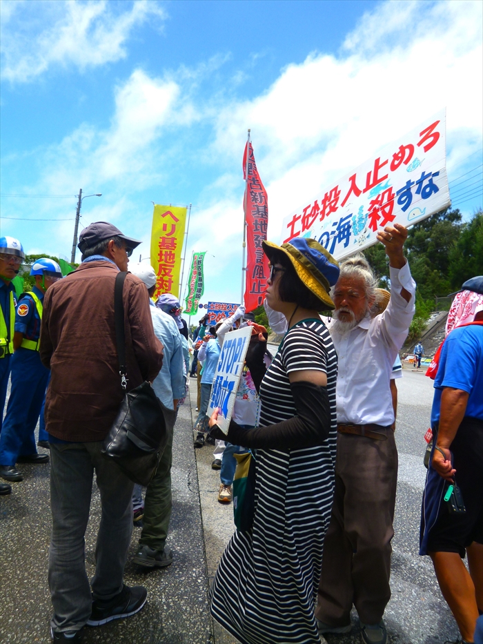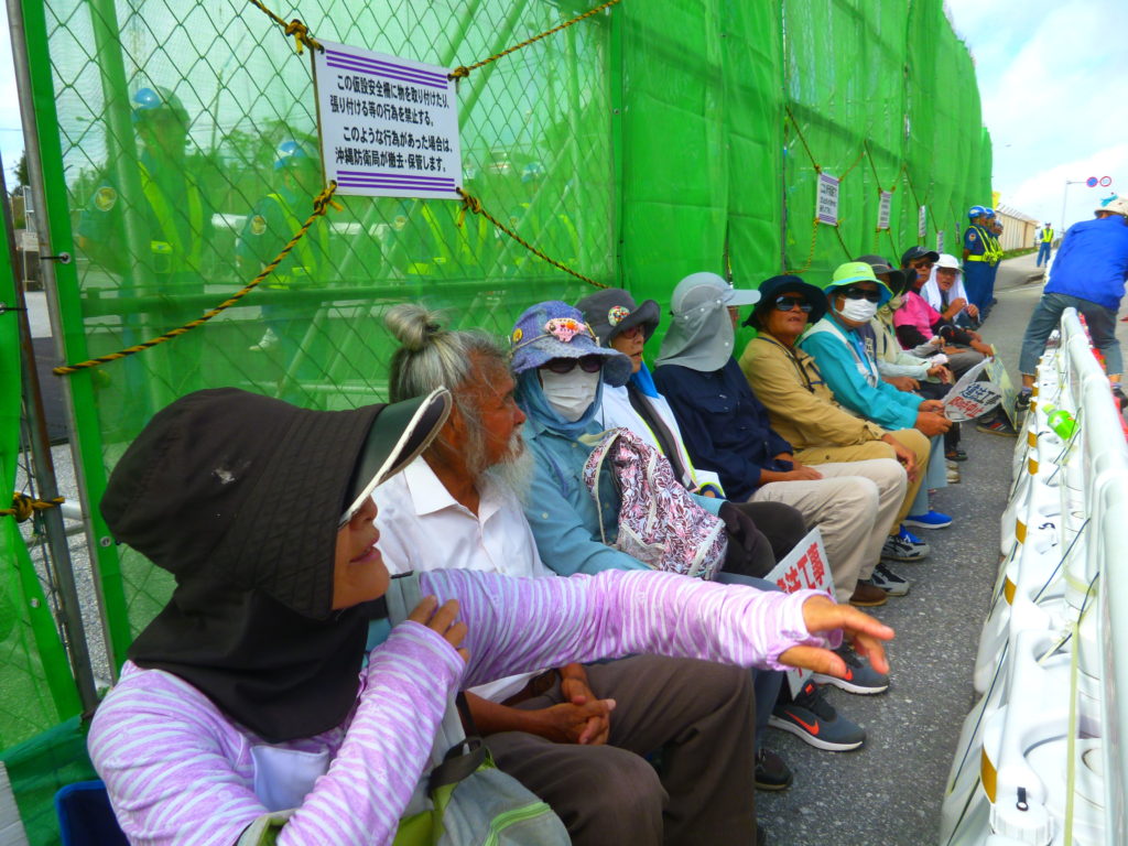 抗議と並行して、台風対策で座り込みテントのシートカバーを取り外す作業も行われた。台風が去ってまた取り付ける手間は大変だが、でも台風のおかげで工事がたとえ2~3日でも止まるのはうれしい。「台風からの贈り物だ!ありがとう!」と、誰かが言った。