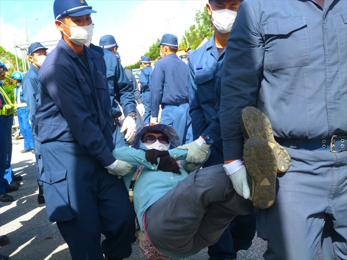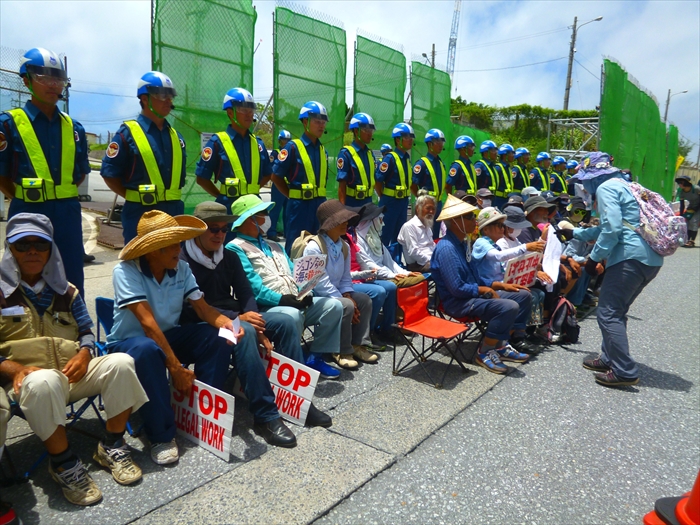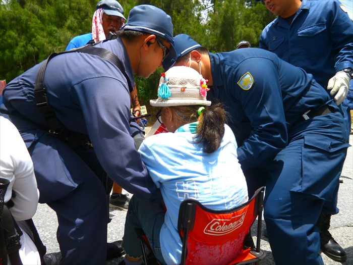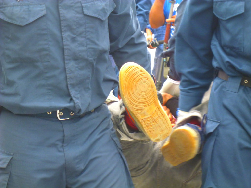 選挙期間中でもあり、いつもより少ない人数で座り込み開始。間もなく機動隊がやってきた。あとはいつもの展開となる。