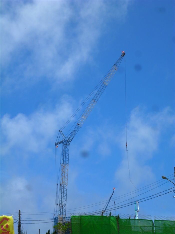 いつも坐りこむ私たちの頭上で、大きな音を立てて動きまくる大型クレーンも、風の強い日は動かしてはならないらしい。数日はそれこそ無用の長物だ。