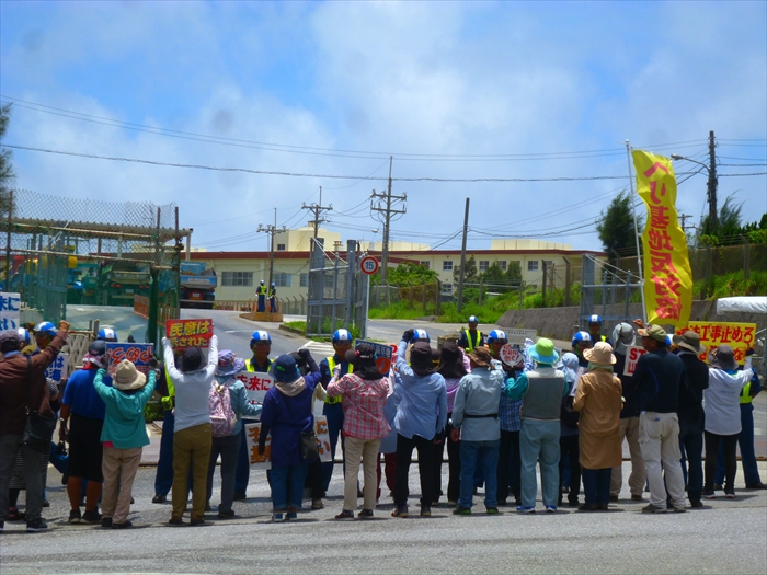 一方、ここシュワブのゲート前は、県警の動きから、いつも通り陸上部の工事用資材を積んだダンプやセメントミキサー車の搬入があるようだと。