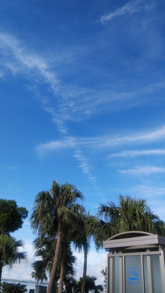 「昼の月」「十字架」「暴れ龍」 ~ 空が気になる日 一昨日(24日)は、やたらと空が気になる日だった。 <月と鳳凰木の花 朝7時前 那覇にて> レモンの薄切りのような月が、お昼過ぎまで青空にくっきりと浮かんでいた。 <空に十字架 8:00 伊芸サービスエリアで> 暴れ龍のようなパワフルな雲に何度も見上げずにはいられなかった。<11:30辺野古にて> うちなぁ ぬちぐすい紀行 2019年7月26日unaiリンクURL この記事を共有する → Tweet Pin It