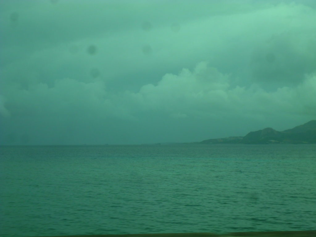 7:00、降ったりやんだりの空模様の中、県庁前(那覇)をバスで出発。