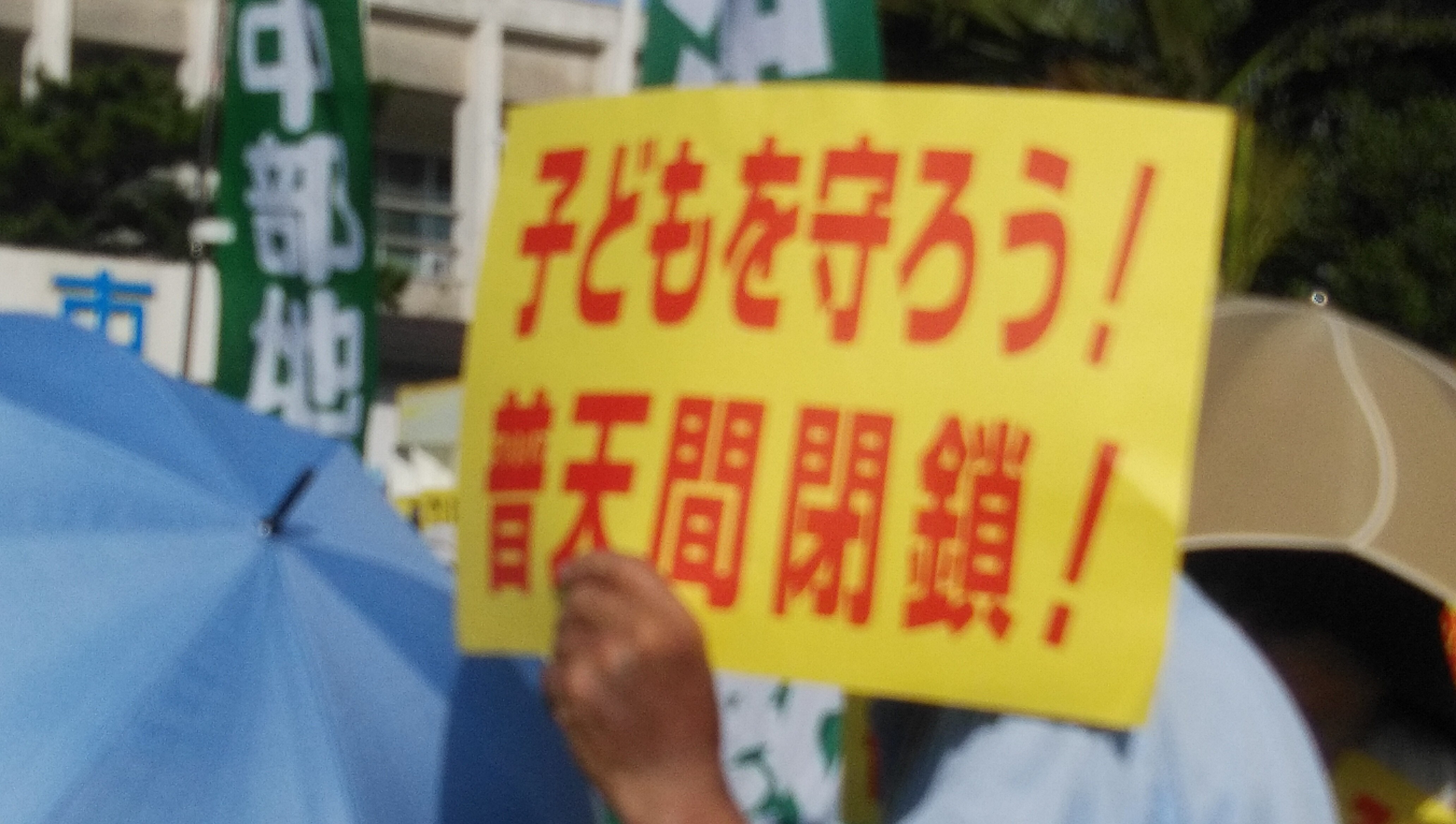 「日曜日だというのに、朝からヘリや飛行機が飛び交い、飛行士の顔がはっきり見えるほど、いつにも増して低空飛行で飛んでいる。今日、この集会があると知っていやがらせをしているのか!」と、怒りの声が上がった。