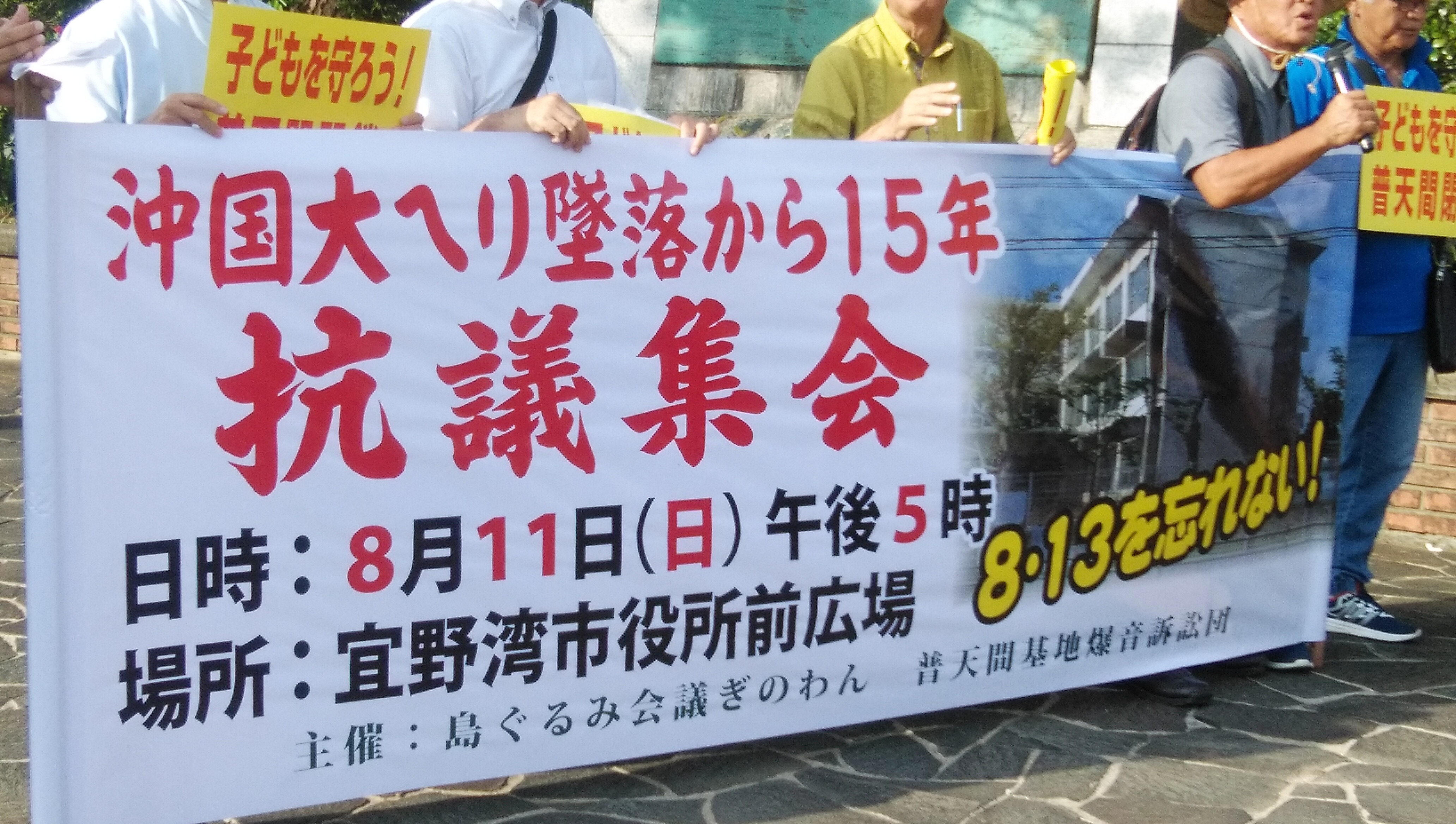 8月13日で、普天間基地所属のヘリが沖縄国際大学の校舎に墜落炎上してから15年が経つ。