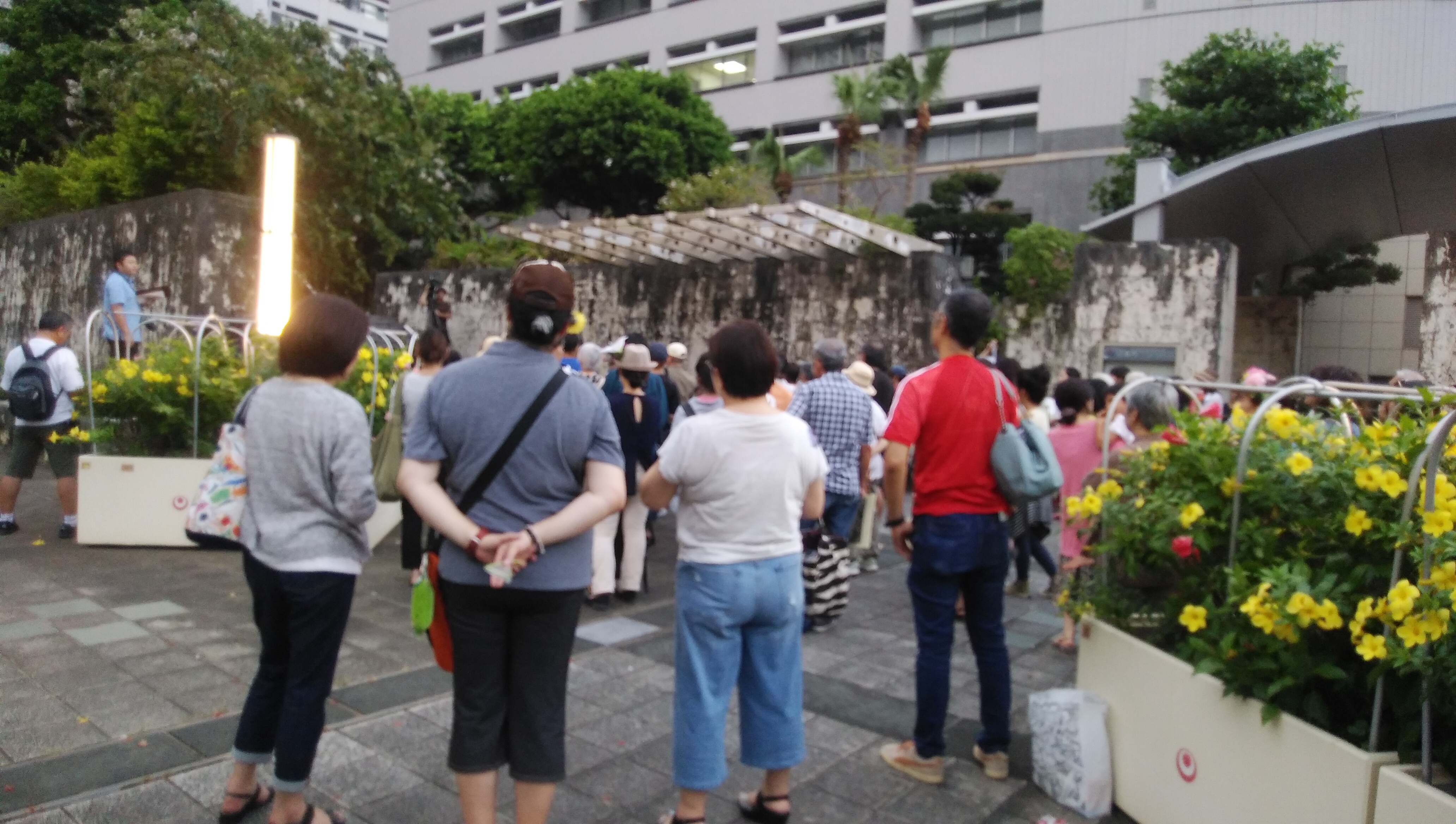 沖縄でも、11日19時から、県庁前の県民広場で初めてのフラワーデモが行われた。