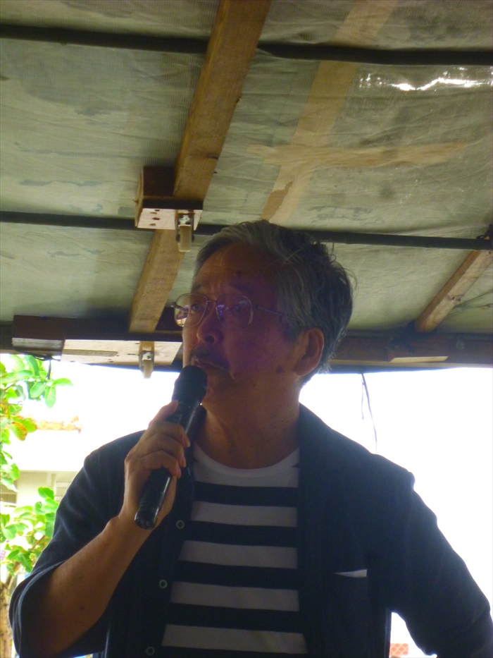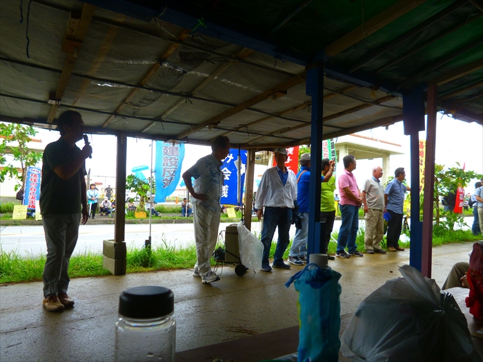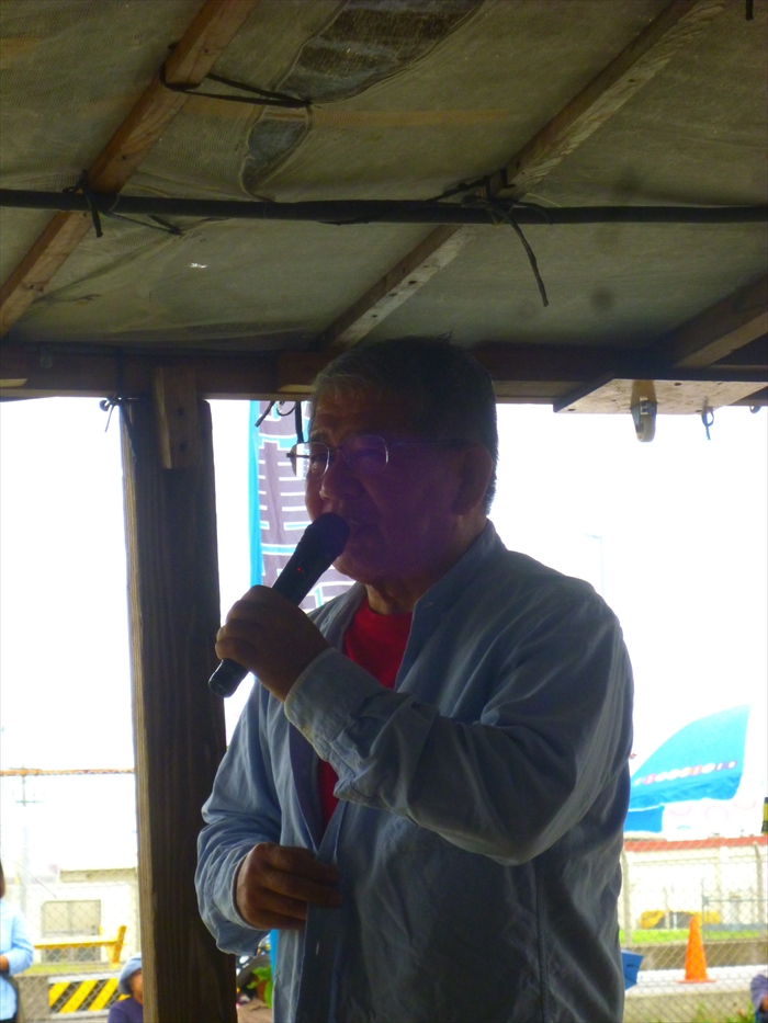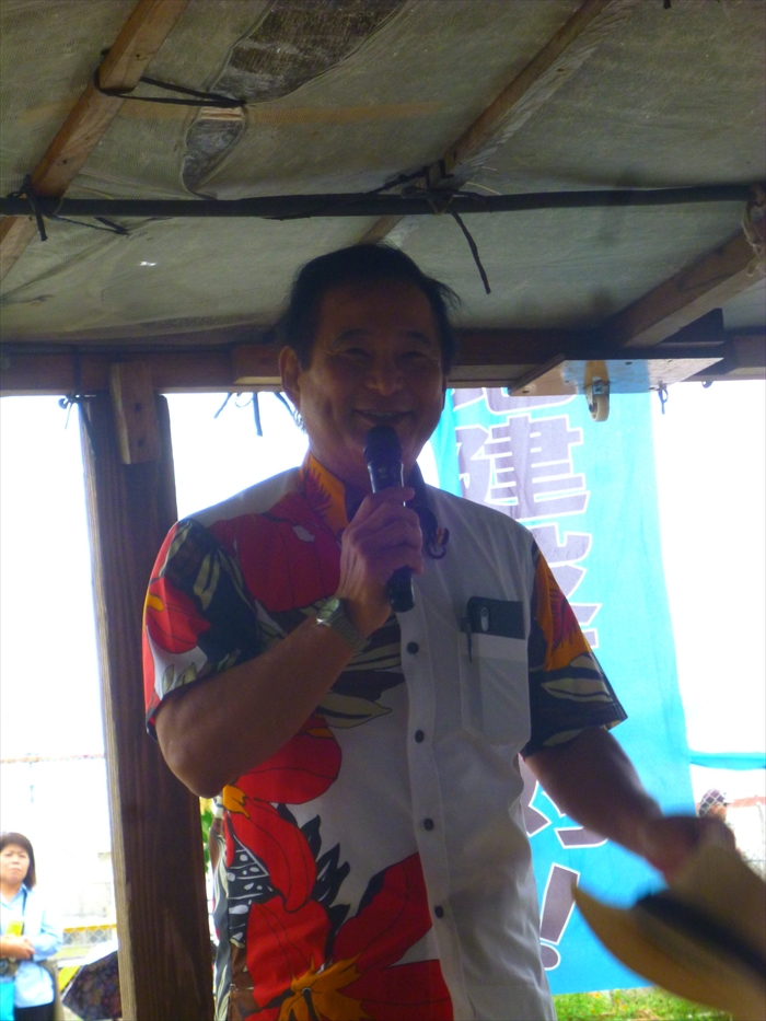 「辺野古の埋め立てはサンゴの移植の問題、設計概要の変更など、国はこれからいくつもハードルを越えなければならない。沖縄県が頑張る限り工事は進まない。政府がいくら工事を強行しても20年かかる。辺野古唯一にこだわれば普天間の危険性は20年以上も固定することになる。みんなで玉城デニー知事を支えて頑張ろう!」