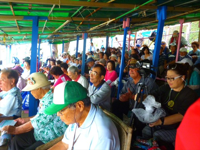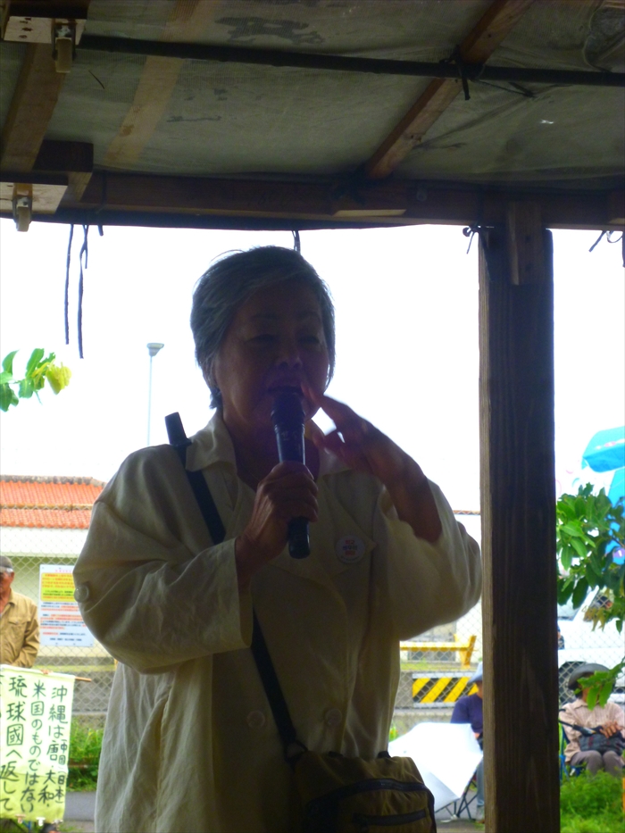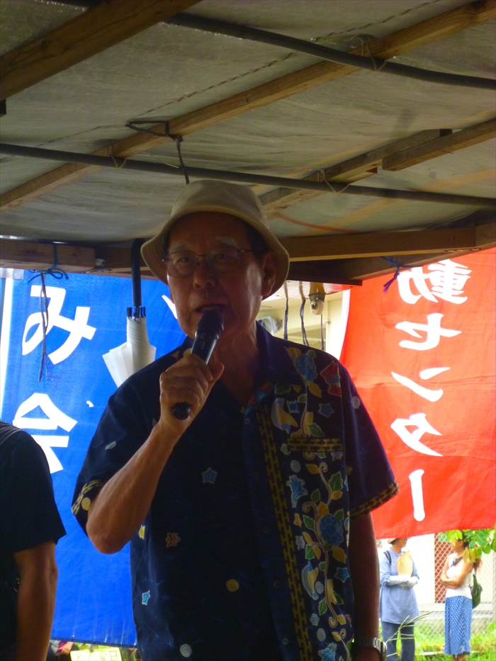 集会は、オール沖縄会議の高里鈴代共同代表のあいさつで始まり、県選出の国会議員や県議、各抗議現場のリーダーらがそれぞれ活動の報告した。