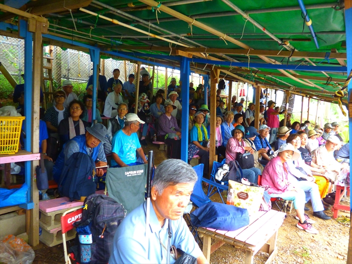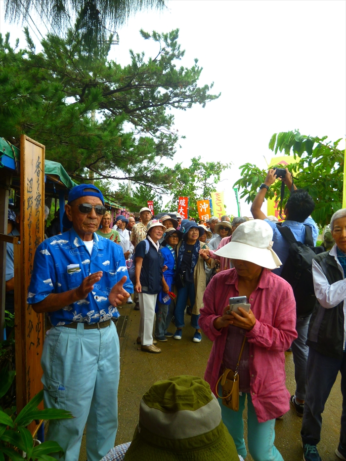 平和運動センターの山城博治議長の指揮のもと、参加者全員で手をつないでオール沖縄式頑張ろうで声を上げ、集会を閉じた。