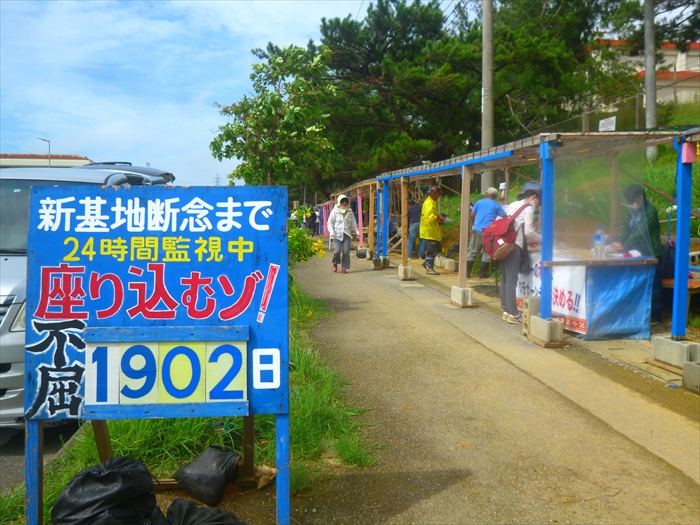 金曜日、平和市民連絡会は「安和」桟橋の担当であるが、高波により既に一昨日から土砂を運ぶ船が避難体制に入っており、今日はトラックによる桟橋への土砂搬入の動きもないとのことで、急遽辺野古ゲート前へ行く先が変更になった。
