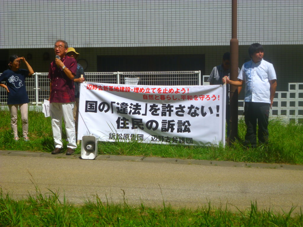 昨日26日(木)、辺野古住民訴訟の第4回口頭弁論が、那覇地裁で開かれた。裁判を前に事前集会と、終了後に報告集会がそれぞれ行われた。