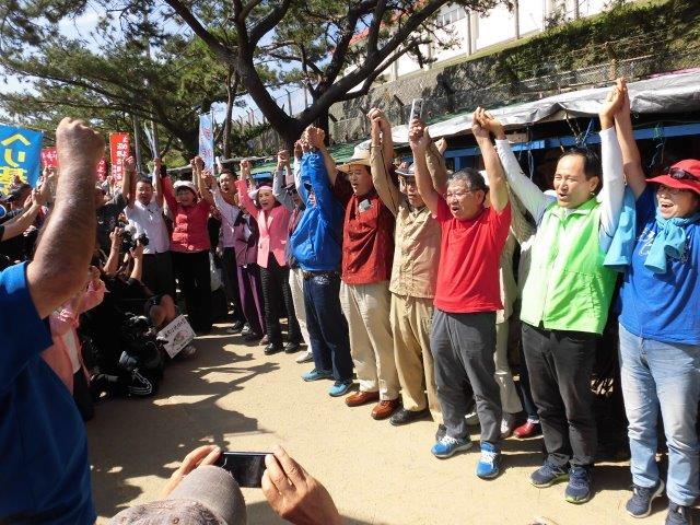 今日は令和の山本太郎さんが参加。「沖縄の魂の象徴である首里城の焼失に衝撃を受けている。県民、国民が力を合わせて首里城の再建も辺野古阻止も勝ち取ろう。