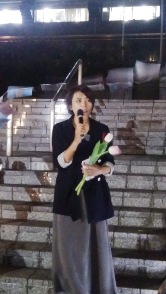 沖縄のフラワーデモにぜひ参加したかったという北原さん。「”女性たちが、やっと声を上げ始めた”とメディアなどで言われるが、そんなことはない。沖縄の女性たちは以前からずっと大きな声を上げつつけている。そんな沖縄の集会に参加できてうれしい。これまで被害者が受けてきた痛みや苦しみを受け止め、絶対に繰り返さないと声を上げ続ければ、きっと社会を変えることができる。一緒に未来を変えていこう」と呼びかけた。