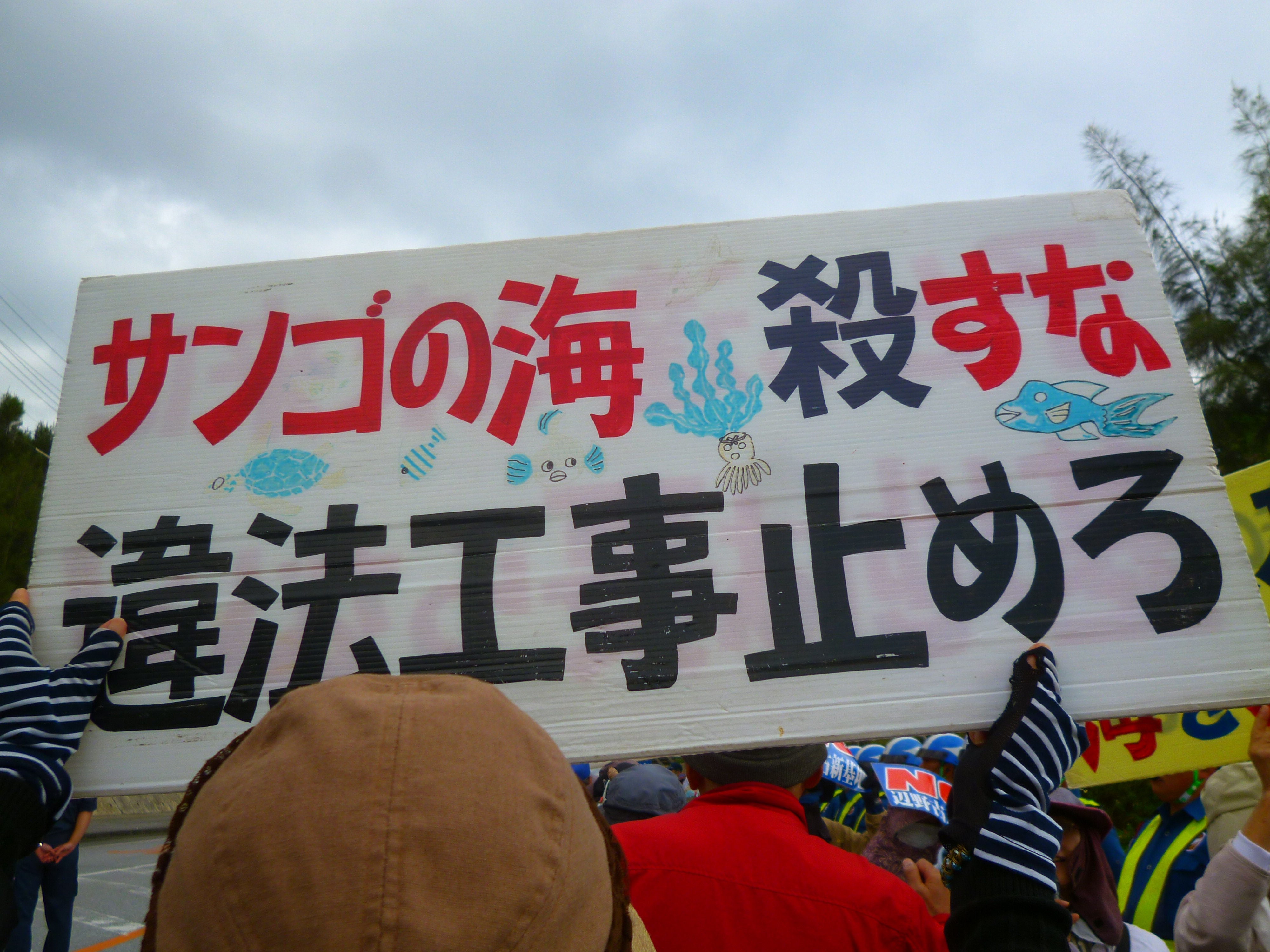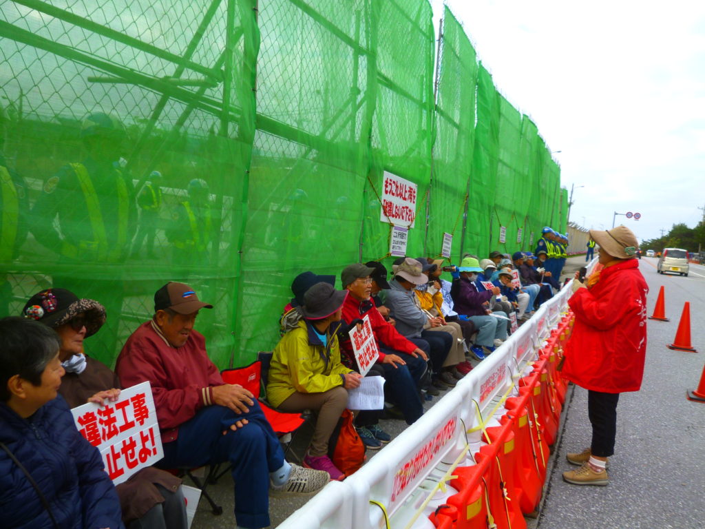 テントスタッフの報告によると、この日も辺野古ゲート前では3回にわたって161台の工事車両が入り、安和桟橋ではカヌー11艇、抗議船1隻だ出て土砂運搬船の離岸を1時間以上遅らせた。本部港塩川では朝から土砂の搬出が行われた。辺野古の海ではk8、k9護岸で土砂搬入の作業が行われていたとのことである。