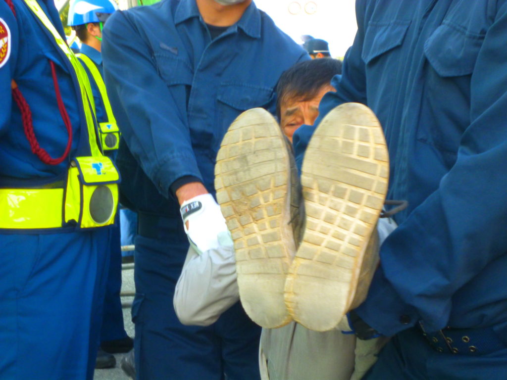 この日も3回の搬入があり、一回目9:00は40名近く、二回目の12:00には100人余、三回目15:00にはおよそ50人が座り込んだが、合計で180台の作業車両に入れられた。