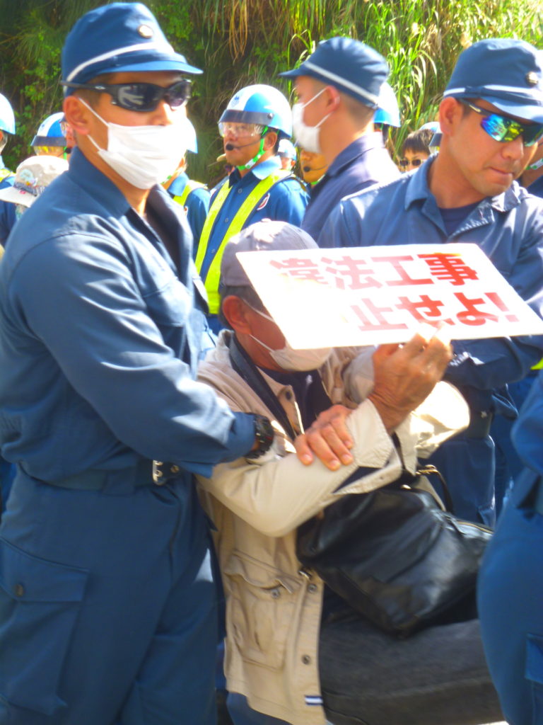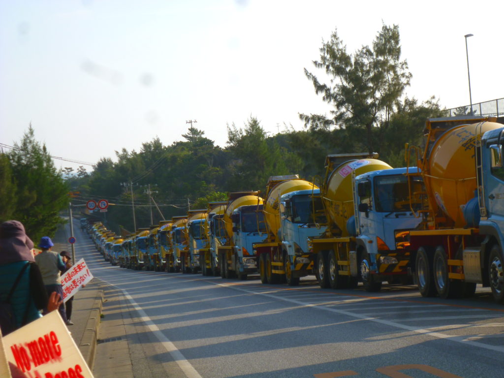 福島の皆さんは、民間工事車両を迎えに行き先導してやってくるパトカーに驚き、道路を埋め尽くすほどのミキサー車の車列に驚き、座り込む人々を力ずくで排除する機動隊の姿に驚き、国家権力の理不尽、すさまじさを目の当たりにして言葉を失い、涙を流す人もいた。「あきらめないで闘い続ける沖縄の皆さんに敬意を表する。福島もいまだに5万人以上の人たちが、故郷に帰れず避難生活を続けています。私たちもあきらめません。共に頑張りましょう」と感想をかたった。