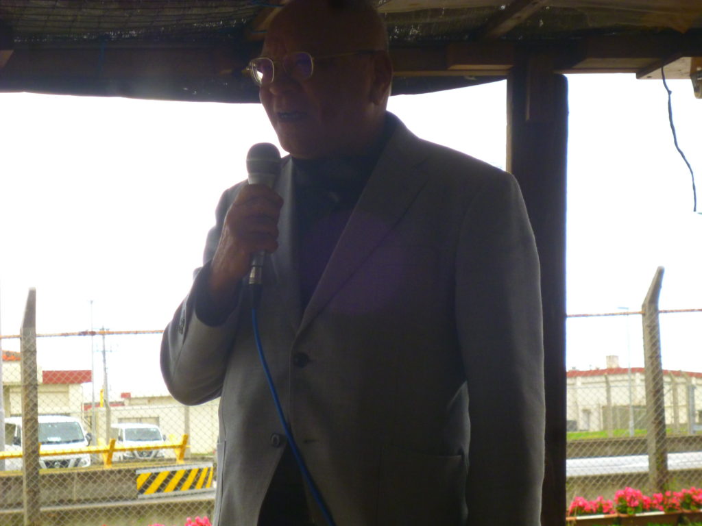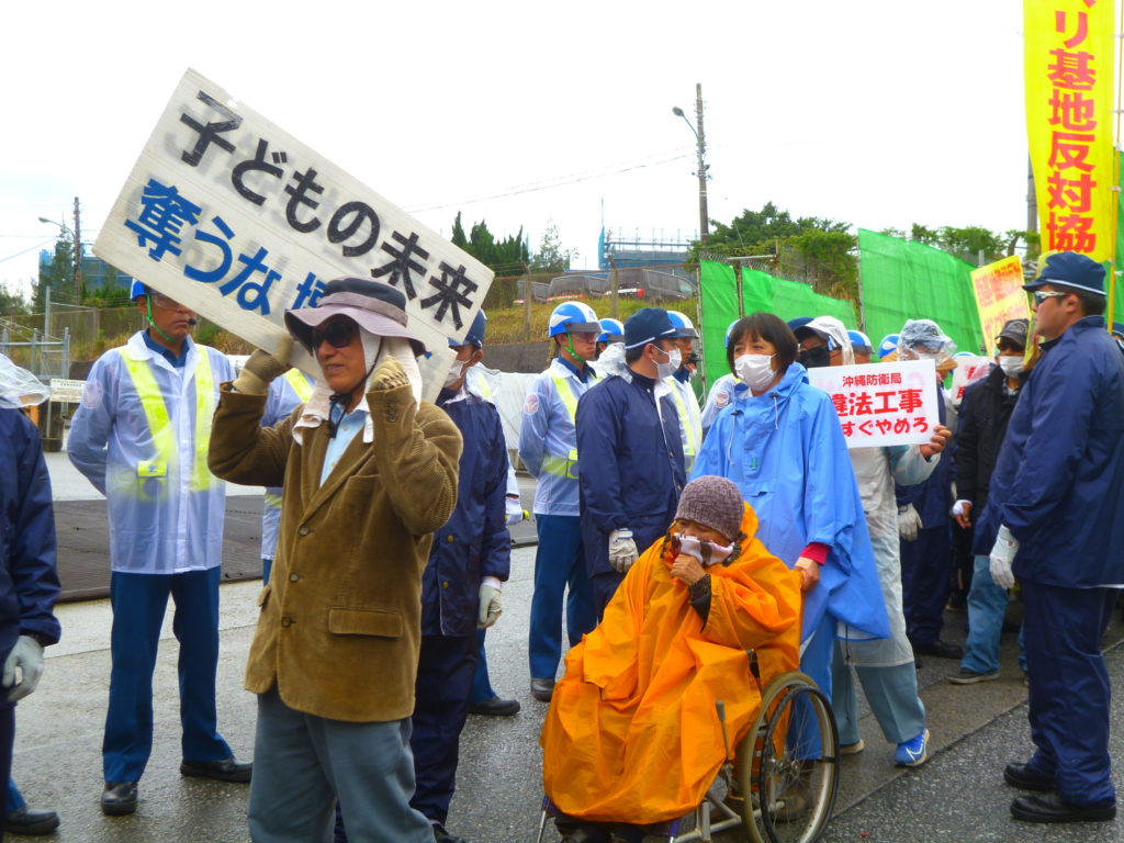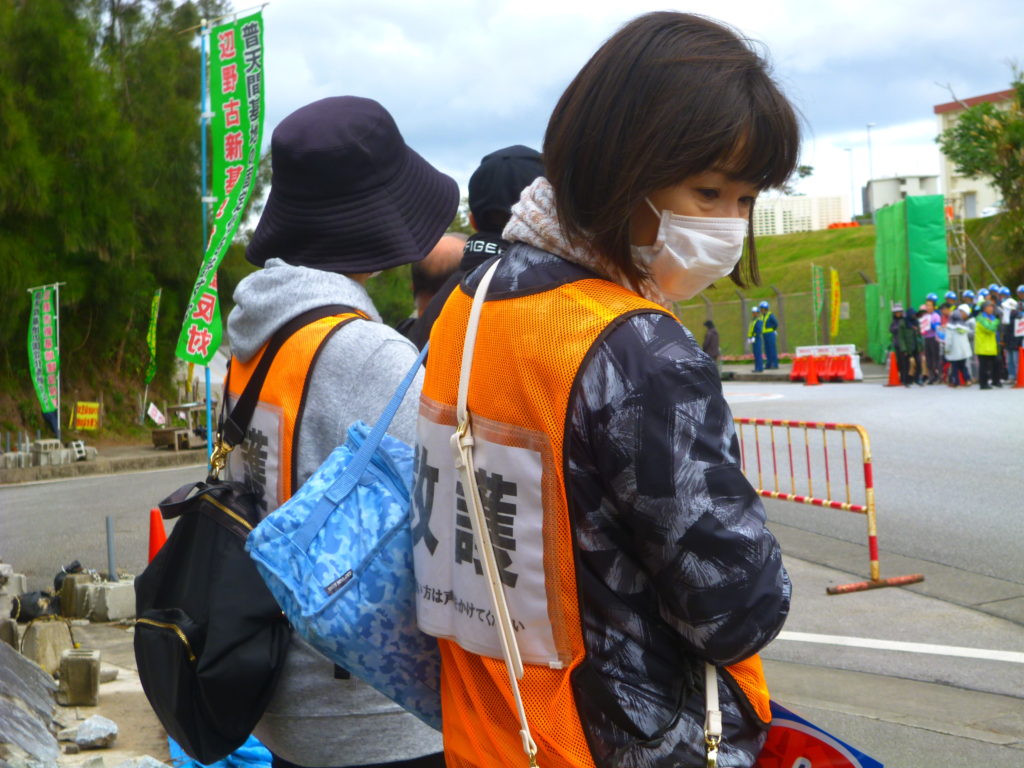 千葉から一人で参加した男性。「50年前に来て以来の沖縄。人生のラストステージを迎え、やり残したことがないようにと考えたら、辺野古へ足が向いた。政府がどんどん戦争の方向に進んでいく中で、孫たちの世代には戦争のない世界を残したい。それが自分たち世代の責任だと思う」と。