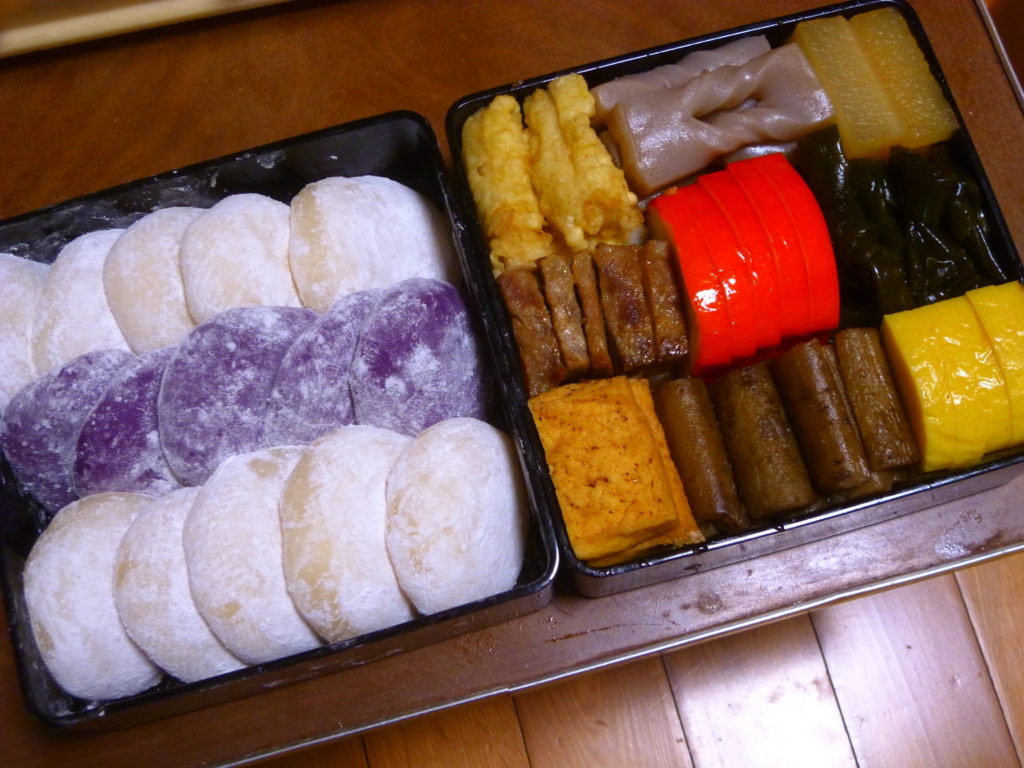 2種類のお餅と、9品の料理を詰め合わせたお重が定番です。沖縄の先祖供養は仏教ではないので、精進料理ではありません。お魚もお肉料理もあります。