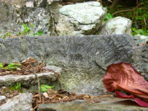 かなり古く、石材のアワ石が風化したり木の根が石のつなぎ目に入り込んで、石積みが崩れかかっていたりして、改修が必要になってきています。