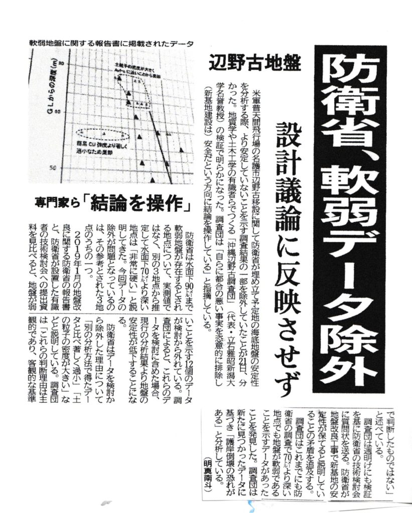 国、またもやデータ隠ぺい ~ 辺野古 軟弱地盤 どこまで腐っているのだろうか この国の政治は!まるで底なし沼のような暗闇が、安倍政権の足元に広がっているのを感じるのは、沖縄の人間だけなのか! 地元新聞の記事より, 沖縄~平和のメッセージ 2020年2月22日unaiリンクURL この記事を共有する → Tweet Pin It