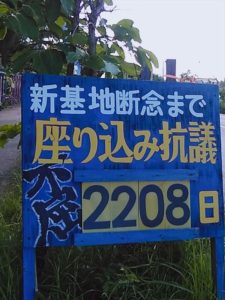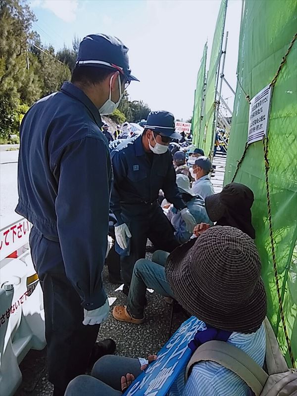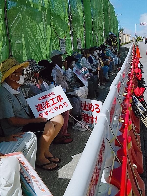 米軍基地内でコロナ感染が広がり、辺野古での抗議行動を束ねるオール沖縄会議では、ゲート前での感染予防に最大限の注意を払っている。ソーシャルディスタンスを1メートル以上取ること、マスク着用厳守、水分補給にMyボトルを持参のこと、バスの中では二人掛けシートに一人で交互になるように座る。機動隊の排除される前に自ら移動する。マイクを使用する場合は、話し手が変わるごとに消毒する。県外からの参加は当分仕替えていただく、etc…。