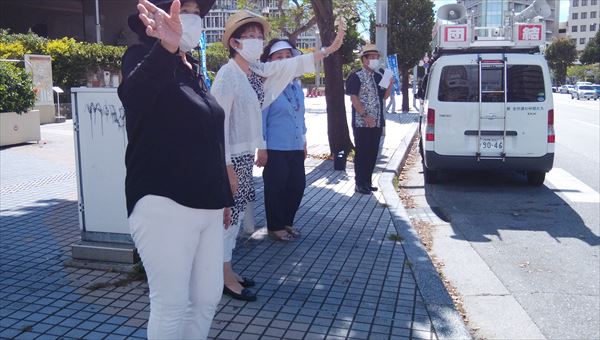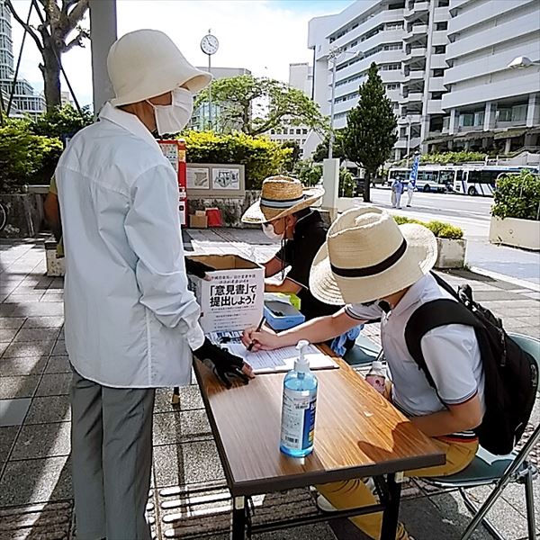 高良鉄美参議院議員や、比嘉京子県議、平和市民連絡会の土木技師・北上田毅さんらが、道行く県民や県外からの観光客に協力を呼び掛けた。