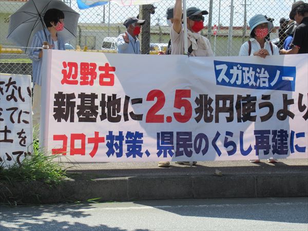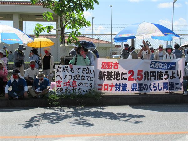 さらに、辺野古ゲート前行動からコロナ感染者を絶対に出してはいけないと、主催のオール沖縄会議は、感染予防のためマスク、手指の消毒、ソーシャルディスタンスを必死に呼びかけた。