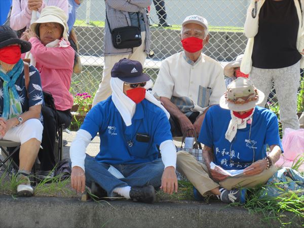 今日の「県民大行動」は呼びかけに応じて、赤いマスクが目立った。赤は「NO」「ストップ」「パワー」を意味する。