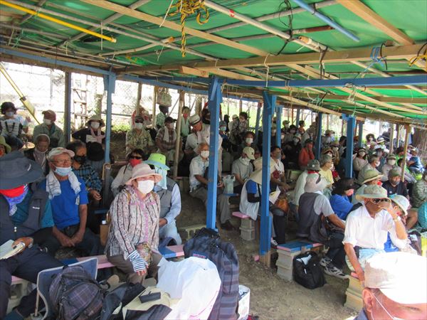 11:00開会。あいさつのトップを切った高里鈴代オール沖縄会議共同代表は「まず、設計変更に対する意見書の提出が15,000件(速報値)を超した。改めて県民はじめ多くの人たちの辺野古NOの意志が示された」と報告。「ゲート前行動も7年目に入り、この年月の闘いの中で亡くなった多くの方々を思い起こそう!その方々の思いを受け継ぎ、確実に新基地を止めて行こう!」とあいさつ。
