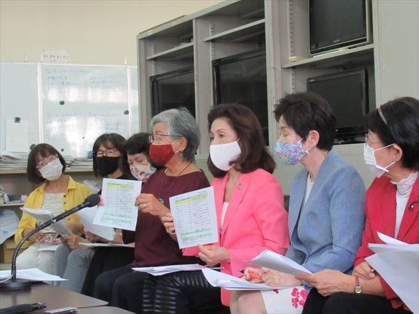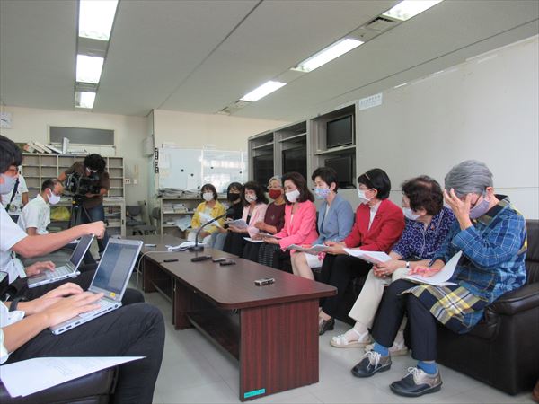 26日、女性たちを中心とする60団体で構成する「1995年10・21県民大会から25年 「SACO合意」を問う!連絡会」が県庁記者クラブで記者会見を行い、声明を発表した。