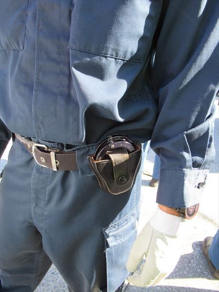 「その手錠、ここで必要なの?私たちは犯罪者?」と聞いてみた。何も答えない。