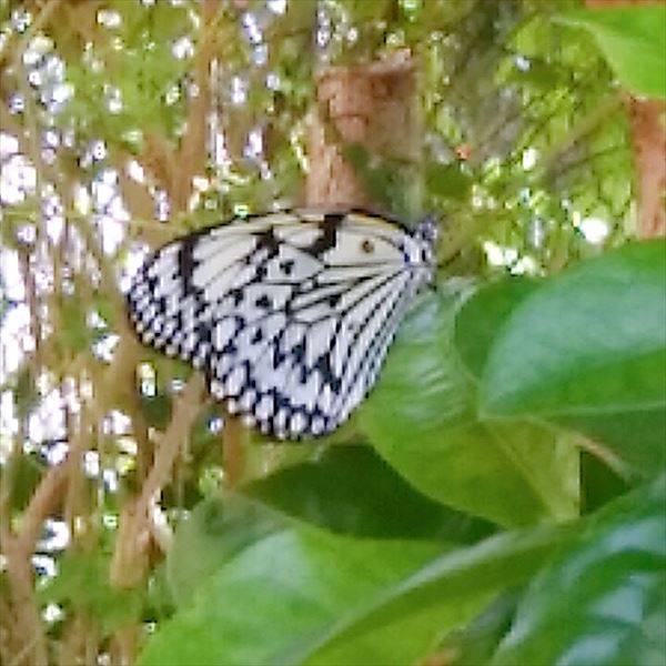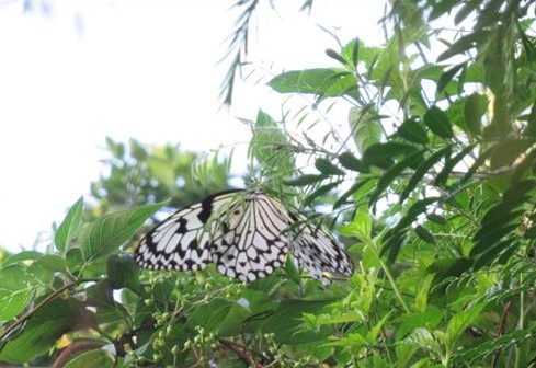 さなぎが黄金色に輝くことから、その魅力のとりこになる人も少なくありません。でも私は、白地に黒い斑点のとてもシンプルなオオゴマダラの成蝶の姿が、好きです。
