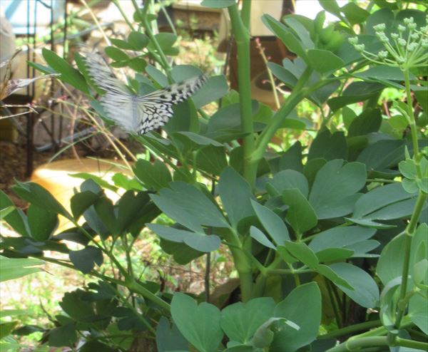 まだいただいたときの鉢のままで、地植えはしていないのですが、2週間もしないうちに、やってきたのです、オオゴマダラが!