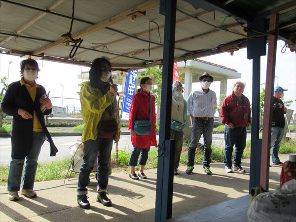 今日は、東京から高校の退職教師のグループ9名が参加。毎年辺野古ツアーを実施しており、今年も6月に予定していたが、コロナ禍で延期。例年の半分に人数を減らして、やっと実現にこぎつけたという。