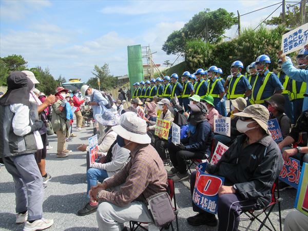 香を放つ月桃の葉よ茂りゆき 辺野古をおほふ邪払へ」 昨年から、テントの前に掲げられたこの和歌は、甲野真貴子さんという方が辺野古を詠んだもの。一昨年、病で亡くなられたという。退職教師の会のメンバーのなかに、作者のお連れ合いがいらした。声を詰まらせながら話された。