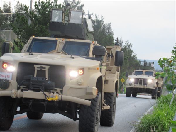 昨日から明日12日まで、米軍基地はベテランズデーということで休日と聞いていたが、バスが辺野古に着いてすぐに、武装した軍車両が、次々とキャンプシュワブから出ていくのが確認された。