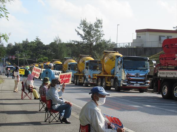 「辺野古の海に生コンはいらな~い!」基地の中に入って行く生コン車の行列に、人々の抗議の声が響く!
