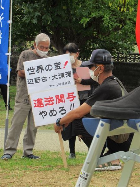 主催者あいさつに立ったオール沖縄会議・高里鈴代共同代表は「サンゴの移植はどの専門家に言わせても、移植は成功しない、無理と言われる。負けるはずのない裁判、勝利に向けて闘う」と強調した。