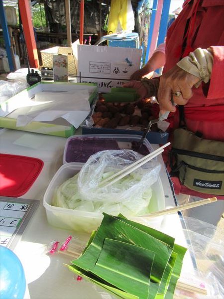 一回目の搬入が終わってテントに戻ると、いつもの差し入れが待つている。疲れた心を少し癒してくれる。