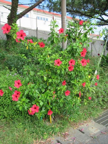 辺野古に着くとテント横のハイビスカスが出迎えてくれた。南国育ちの花たちも沖縄の夏は暑すぎて育ちにくいのだろうか。涼しくなって、花が一斉に咲きそろった。