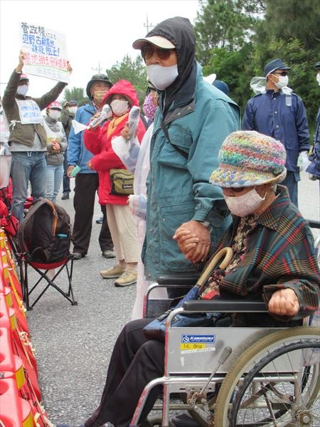 山城博治さんもこの歌が大好きだ。文子さんと手を握りしめ合って涙をこらえ、高垣さんの歌を唄った。