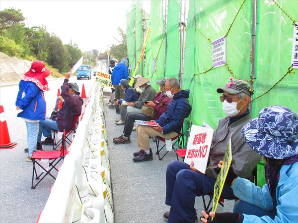 当初2月7日までとしていた県独自の緊急事態宣言が2月いっぱいまで延期となり、辺野古の抗議行動も休止が続く。今日も水曜日担当の責任者を中心に、十数人から20人余で一日3回、少人数で座り込んだ。