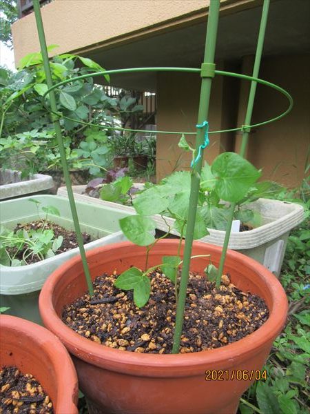 偶然に「撫順の朝顔」のことを知り、ある方から種を分けていただくことになりました。いただいた種を植えて5日目には芽を出し、さらに一週間では定植できるほどにすくすく伸びています。