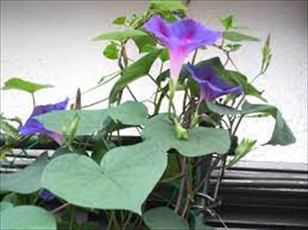 私たちがよく見かける朝顔は、葉先が三つに分かれたものがおなじみですが、撫順の朝顔はハート形、葉も花も一般的な朝顔より小ぶりだそうです。(花の咲いている写真は、ネットから拝借しました)