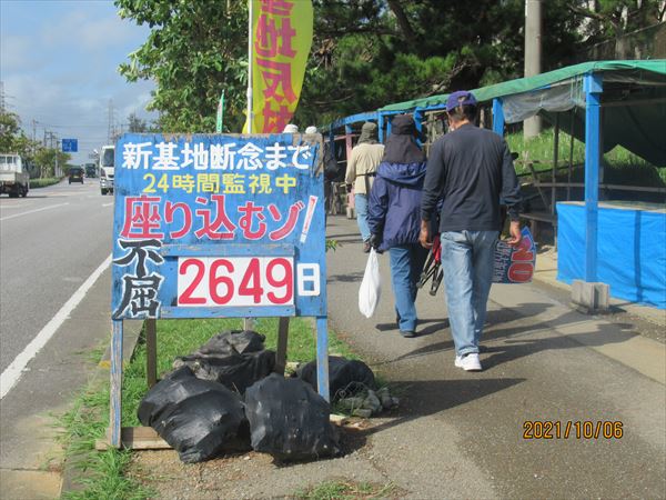 コロナ緊急事態宣言開けはじめての水曜日。緊急事態は開けても、沖縄県は独自に自粛体制をとっているため、ゲート前行動も組織的な行動はまだ解禁になっていない。県外からの参加もまだ自粛を要請している。それでもいつもより多い人数が座り込んだ。